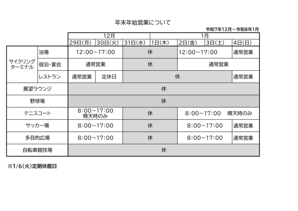 年末年始営業日は下記の通りとなっております。
